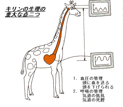 キリンのあの長い頚部は、生理的に重大な問題が二つある。