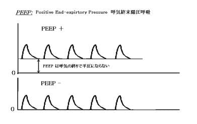PEEP:呼気終末陽圧型人工呼吸 PositiveEnd-expiratory pressure の略。