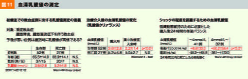 2007~2012年の当院重症敗血症例について検討しました。生存群52例と死亡群27例の2群に分けると、前述通り死亡群についてはLacが高いという結果になりました。