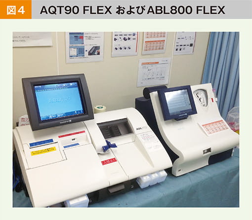 当院ERにて使用しているPOCTについてですが、血糖測定機器、心疾患マーカー等を測定するAQT90 FLEX、血液ガスシステムABL800をERに設置し、救急現場にて測定を実施しています。